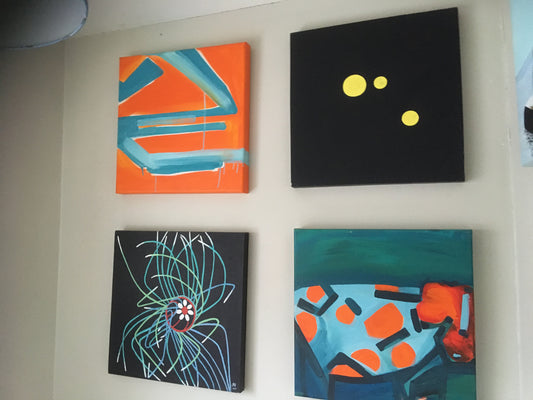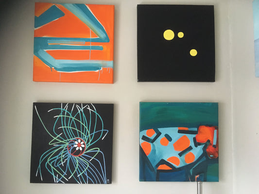 Painting- Blooming Flowers Cell Centered Blue Tones (Two) SOLD