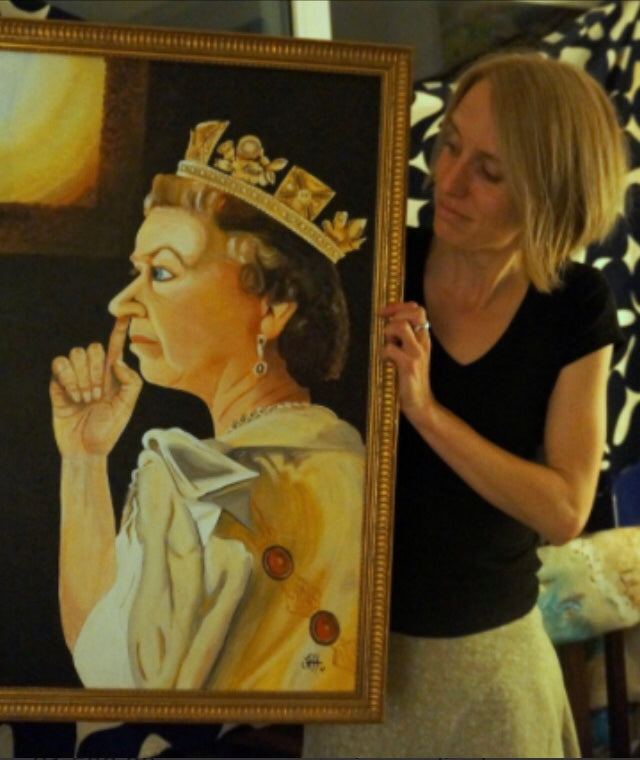 Jacqueline Hammond's paintings printed on a bag - wear your favourite art prints and carry your stuff in style! Natural cream coloured tote bag with long handles for carrying over the shoulder. Strong enough to carry heavy items, and lightweight enough to fold up and put in your pocket or handbag. Humourous portrait of The Queen design printed on one side. Dimensions 38cm (w) x 43cm (h) 100% cotton, fabric weight is 135gsm, (approx 5oz)
